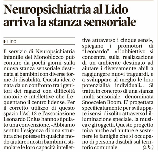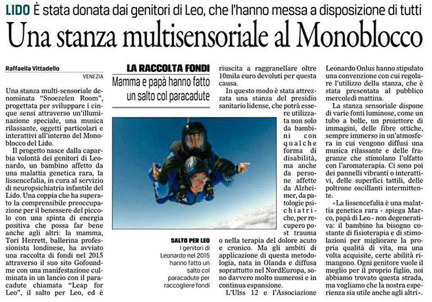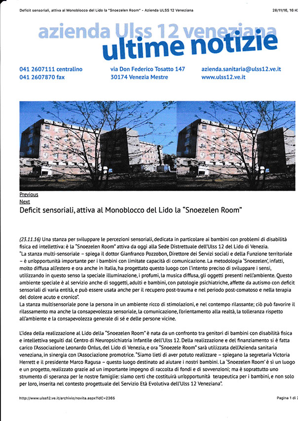 Our first project to create a sensory room was a great success and we now have this fantastic room within our hospital “Centro Polifunzionale al Mare” in Lido Venice. To get our room up and running we had to raise a significant amount of funds. Victoria (Tori) Herrett took on the challenge of a Skydive on the 7th August 2015 and raised a huge 10,000 euro. Since then we have been working very hard to set up the room having to follow hospital protocol, attending meetings and producing written reports. After much turmoil and lots of patience the room is now ready to be used. Our official opening was the 23rd November 2016.